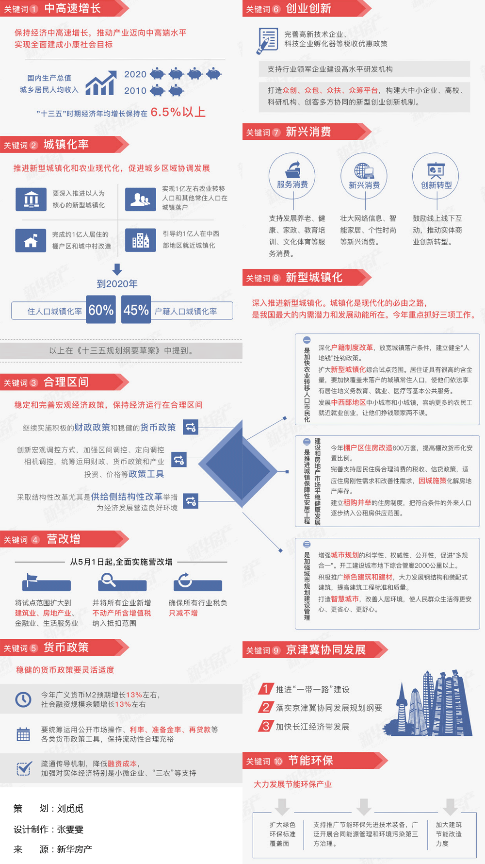 解读:年均6.5%的经济增速将为居民收入翻番提供可靠保障。根据目标,城镇居民人口可支配收入到2020年翻一番的话,将由19109元上升到38219元,城镇居民购买力将显著上升,对楼市需求尤其是改善需求释放而言,将提供一个坚实的经济支撑。