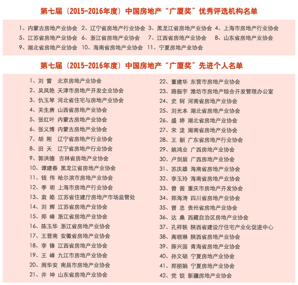- 关于表彰第七届(2015-2016年度)中国房地产“广厦奖”