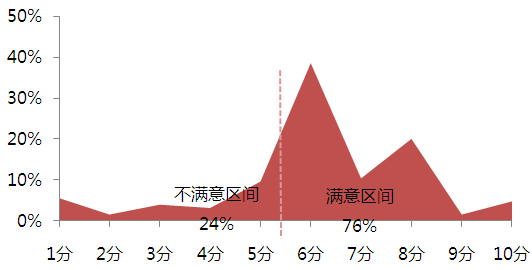 - 调研数据显示,房企的员工处于相对满意区间的占92%,处于不满意区间的占8%。其中,6分满意度的勾选率最高,占到4成,其次为8分,占21%。整体满意度的平均分值为7.13,处于一般水平。
